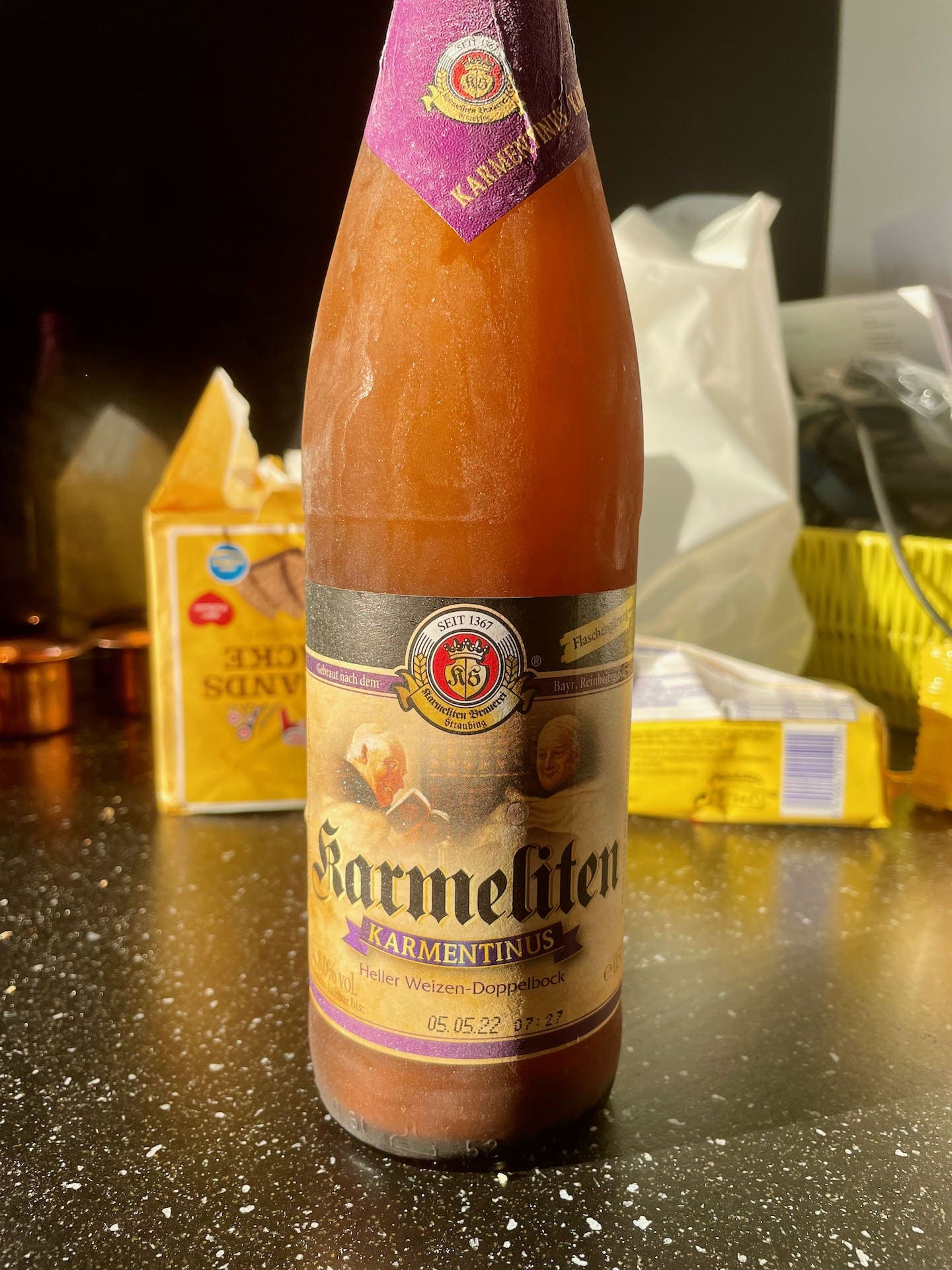 Svängde in om Systembolaget ikväll och köpte några öl. Bland annat en Karmeliten. För att skynda på nerkylningen stoppade jag den i frysen. Sen blev jag förstås upptagen med annat och när jag väl kom på att jag lagt in den där så var den helt bottenfrusen. Så nu blev det ingen provsmakning av denna tyska öl. Den får gotta till sig i kylskåpet och jag får helt enkelt prova den en annan dag.